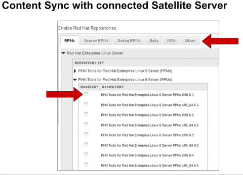 Note: The products shown on the Enabling Red Hat Repositories page are dependent on the subscription manifest content.
