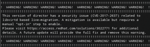 For users running a director version that does not currently have the full secure fix, the following text will be displayed when running the overcloud deploy or update commands.